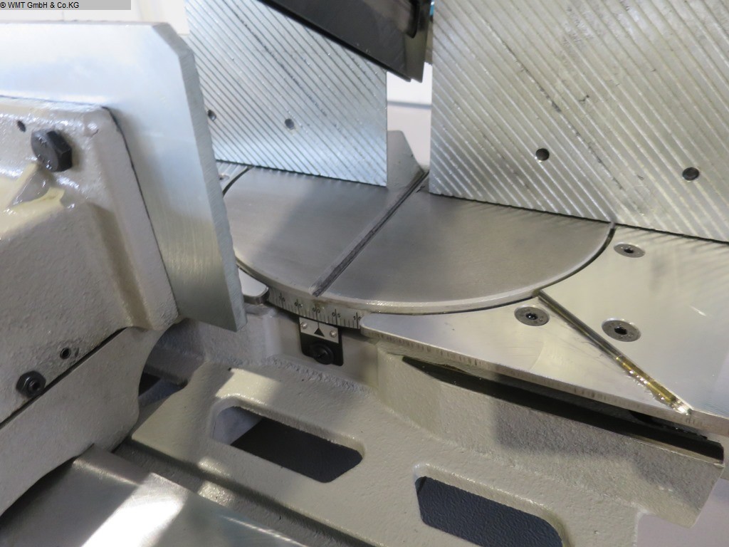 AKTIONSPREIS!!! Doppelgehrungs-Metallbandsäge Hydraulik Halbautomat mit: - Hydr. Spannstock - Material-Höhentaster - Schnittüberwachung durch Amperemeter - Schnittdruck-Vorschubregler - Bandgeschwindigkeit 34 / 74 m/min - Gehrungsschnitte bis 60° links und 45° rechts - Patentierter, kugelgelagerter Drehtisch für leichte Gehrungsverstellung - Schnellspannstock verschiebbar - Schnellspanhebel - Kühlautomatik Frachtkostenanteil 120,-EUR