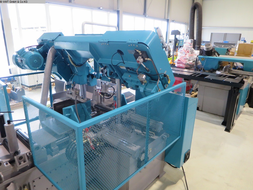 Unused display machine!!!! 2-column high-performance automatic band saw from the SBS series Modern SNC 20 control system for CNC models Frequency-controlled saw drive Work light Powered chip brush Hydraulic band tensioning Clamping pressure adjustment Double vise (before and after the band) Creep speed for positioning Bundle tensioning, electrically and hydraulically prepared Chip conveyor The SNC 20 control system allows for convenient and uncomplicated input of up to 20 different sawing tasks (length and quantity). When the target dimension is entered, the control system automatically calculates the saw waste and the number of feeds. In addition, the error code display system provides quick analysis for troubleshooting. Including band path detection (1800 EUR)