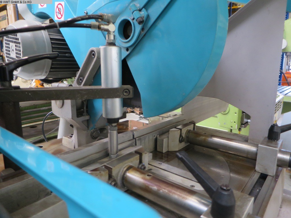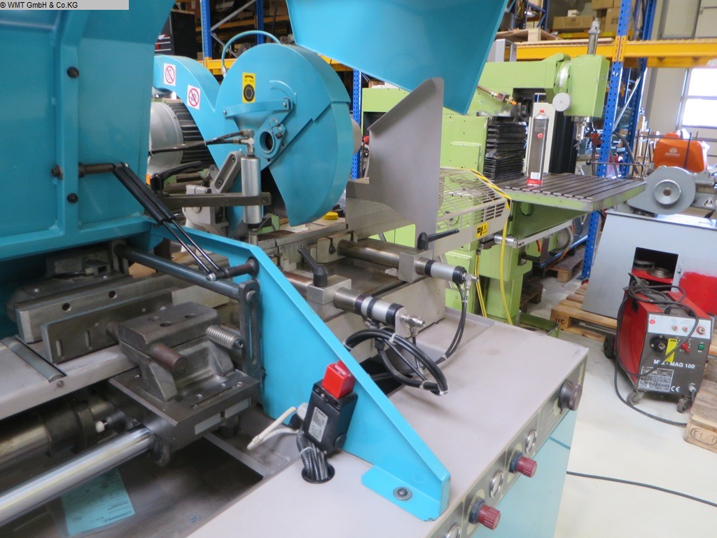 Hydropneumatik-Vollautomat · Gehrung Links/Rechts · Kopf-Schrägschnitte bis 45° (Schifter) a. b. · Pneumatische Doppel-Spannvorrichtung · Pneumatische Vertikal-Spannvorrichtung · Integrierte Kühlmittel-Sprüheinrichtung MPS-Steuerung: · Speichern von Schnittanfang / -ende · Anzeige von Stromaufnahme, Stückzahl, Schnittzeit... · Wasserkühlung regulierbar · Schnittdruckregler